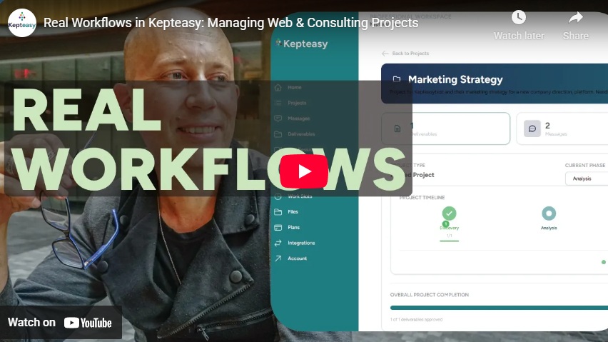 Consulting work isn’t web work. Web work isn’t marketing. Kepteasy keeps the workflow aligned to the service.